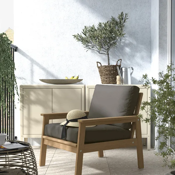 KUDDARNA戶外靠枕質感舒適,適合戶外使用,布料採用永續的染色方法,長時間日曬也不易褪色;可雙面使用,延長使用壽命