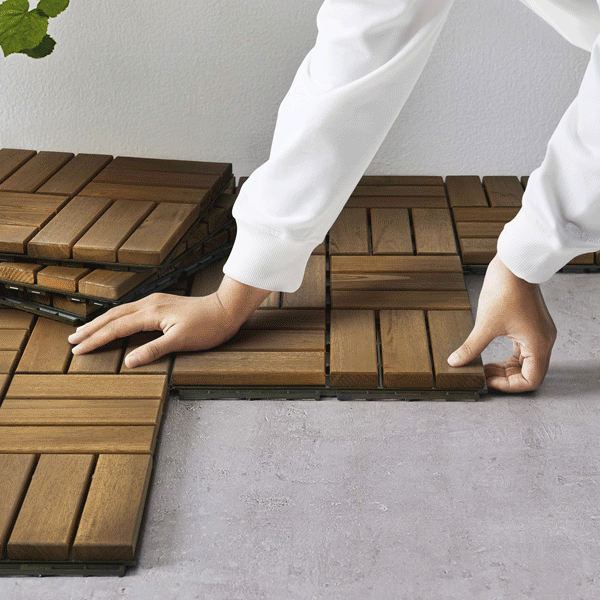 你可以挑選不同款式,打造出專屬陽台風格!如素色RUNNEN搭配花磚MÄLLSTEN,或是RUNNEN人工草皮搭配長型UTLÄNGAN地板,輕鬆組裝,多種組合任意搭配。