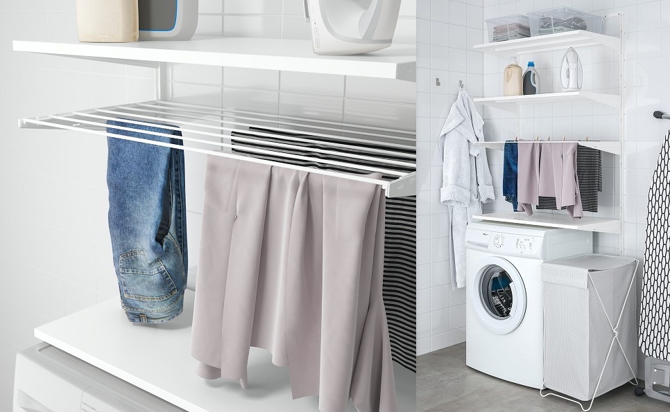 這款靈活耐用的超值上牆收納組合,適用於傾斜或較高的天花板,也適用於室內潮濕的地方(浴室和洗衣間),設有網狀層板和晾衣架。主要尺寸:寬60或80公分;高100或200公分;深40公分。安裝桿的寬度為62、82或182公分。