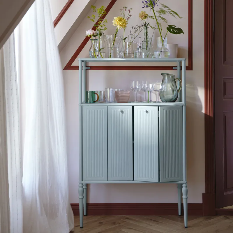 想要讓空間看起來更清爽有序?秘訣就是封閉式收納!在 EKET收納櫃上加裝門板,讓雜物在門後隱身/ 立刻把雜物都變不見,整個空間顯得更清爽整潔。試試混搭開放式收納櫃,同時兼顧展示和收納!
