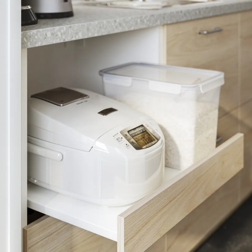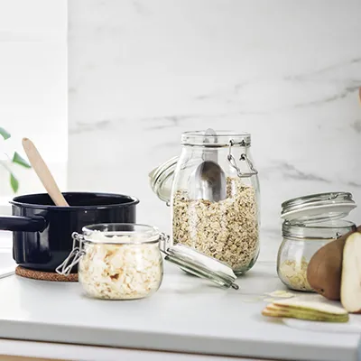 將乾燥的麥片、米、沖泡粉存放於食物盒中,可避免受潮。搭配勺子,既能保鮮又能方便使用。