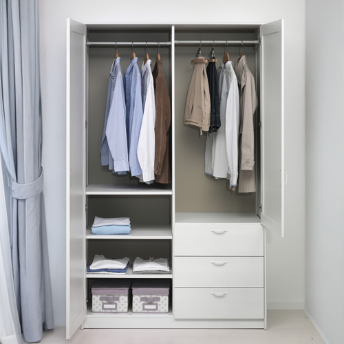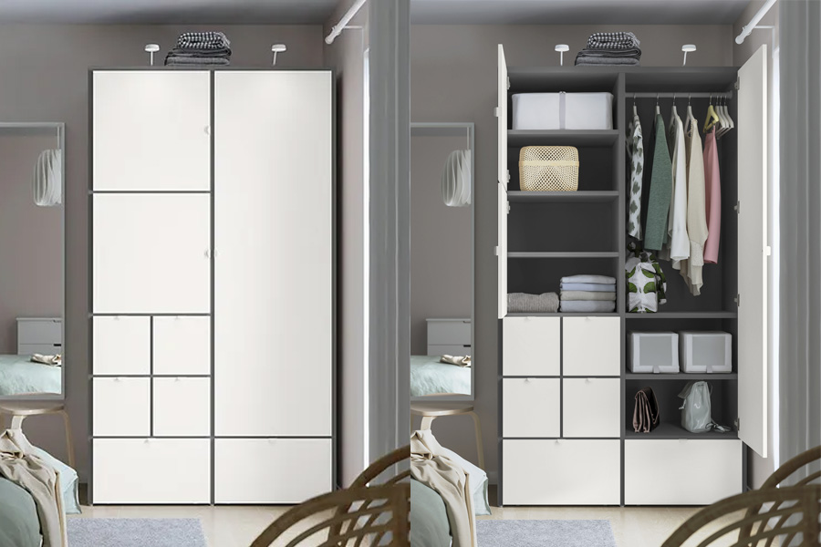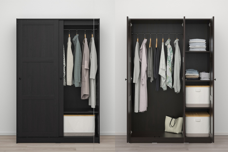 你會很驚訝KLEPPSTAD有那麼大的收納空間,滑門設計的衣櫃在小空間也能輕易打開收進衣物。