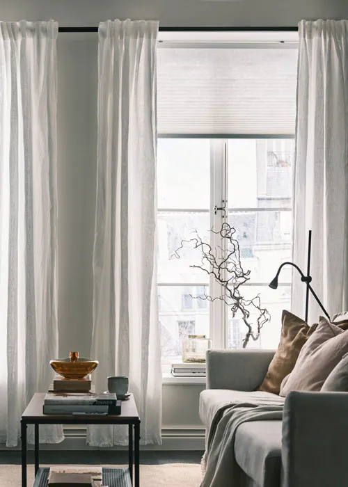 雙層窗簾不但好看,而且非常實用。結合輕透紗簾和厚實深色遮光簾,利用薄透紗簾引入自然光,需要時拉上厚實遮光簾遮蔽視線。為房間創造視覺空間感,也是強化風格的超實用小秘訣。