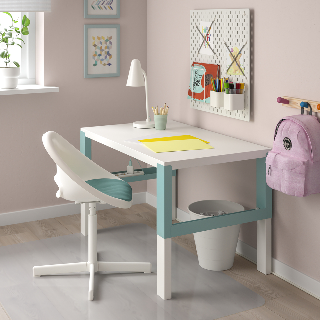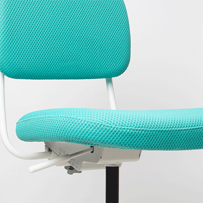 IKEA專為兒童設計的人體工學椅,能隨著孩子成長適時調整座椅及背部高度,提供舒適和符合人體工學的坐姿,防止背肌疲勞。從身高115公分至185公分都能適用。