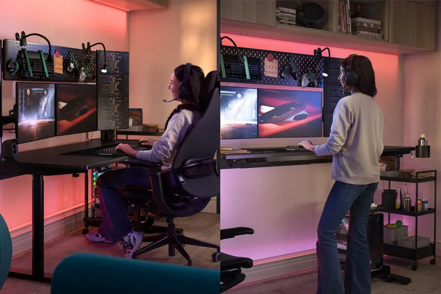 無論你需要辦公桌,或是在家工作或玩遊戲的電腦桌,電競桌都是絕佳選擇。為長時間桌前工作量身打造的重點功能,例如寬敞桌面、可調節高度和電線收納。優化設計,為你帶來最佳表現。