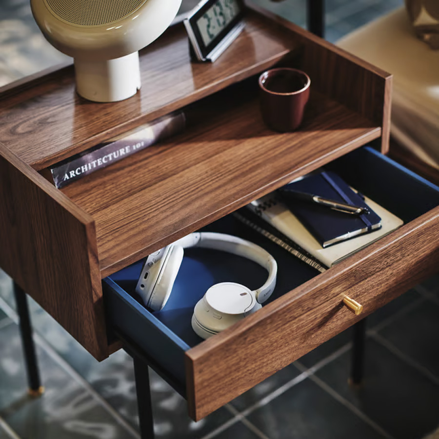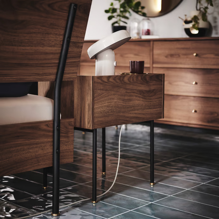 看不到電線的床邊桌是解憂神器,更何況大家都不只一條線,STOMSÖ床邊桌內建電線收納設計,背面預留孔洞方便連接桌燈和電源,輕鬆保持上線狀態,也自在維持桌面整潔。
