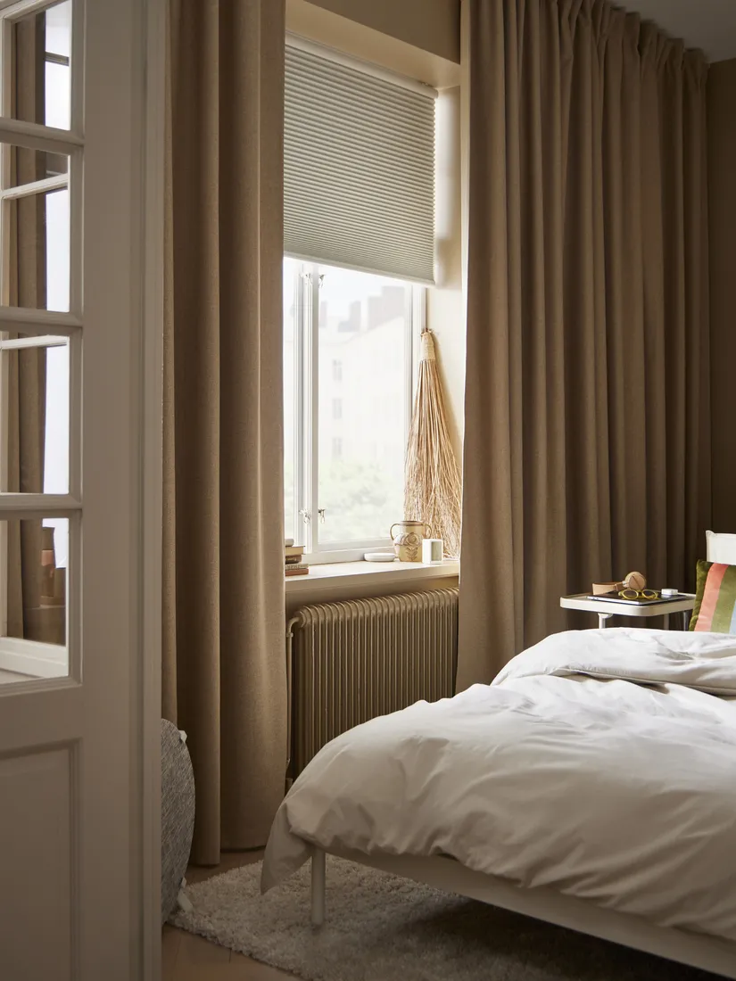 想要睡得安穩,聲音也是重點;靜謐的臥室,就像是好眠綠洲。我們無法控制屋外的喧囂,但能夠創造安靜的臥室,在這裡一覺到天亮。來看打造靜謐臥室的小秘訣: 厚實窗簾可降低噪音:在睡眠區或臥室裡使用厚實的窗簾,幫助隔絕屋外街道噪音。 長毛地毯是很實用的吸音器:縝密的長毛地毯就像是吸音海綿,能讓腳步聲聽起來更輕柔,也能吸收干擾的噪音。