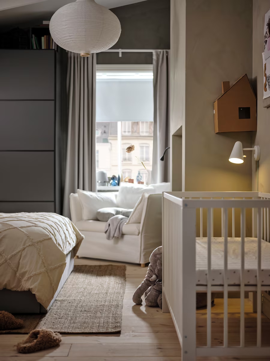 如果你是初為人父或人母,就必須留意親子房的安全隱憂。確保嬰兒床遠離容易抓取的危險物品(例如電暖器),家具也要使用安全配件固定。寶寶眨眼間就長大了,所以現在就要開始準備迎接不久後的未來。如果想得到更多訊息,可查看我們的兒童安全指南。