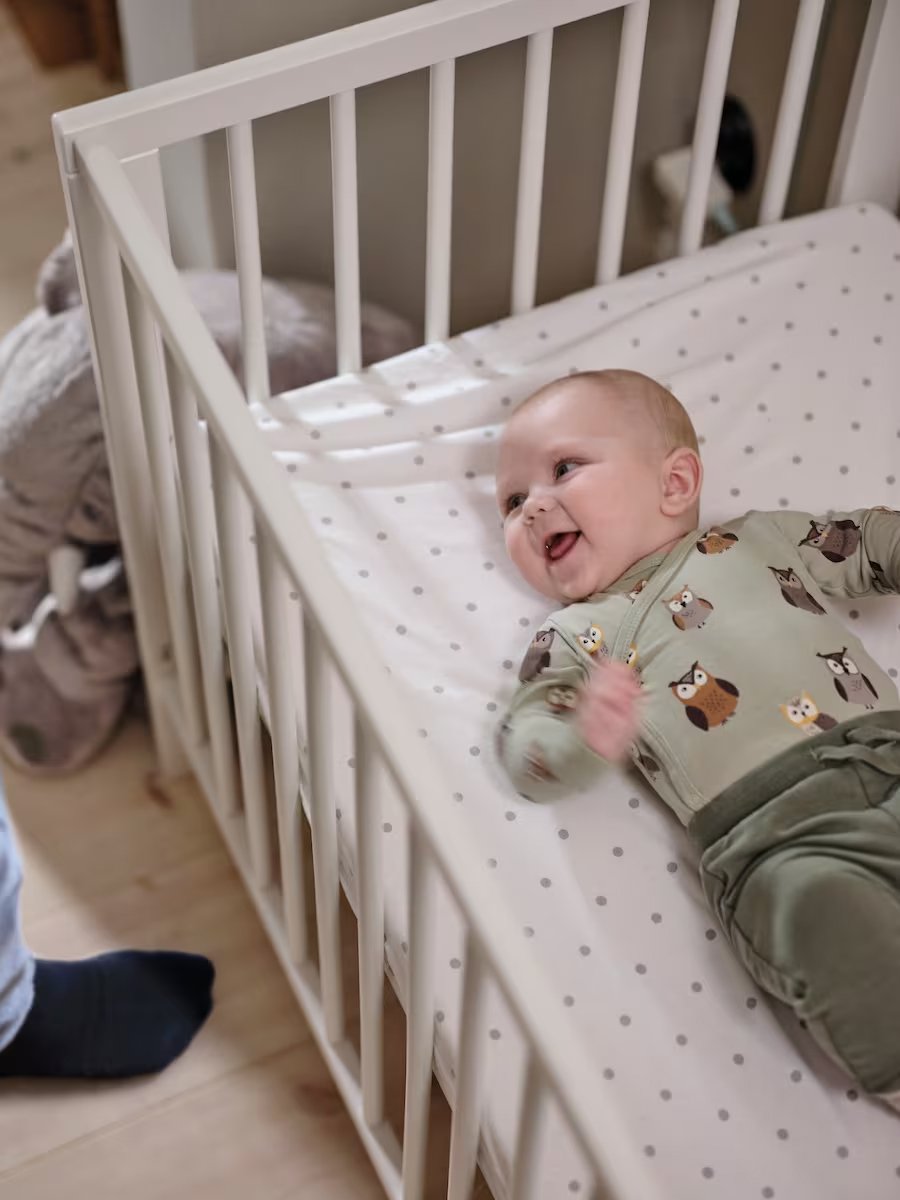 把嬰兒床放在你的床邊,就無需起身查看寶寶了。嬰兒床最好靠牆置放,並且遠離帶窗簾的窗戶、電源插座和電暖器。套上百分百純棉的床包,寶寶就能能睡個好覺。