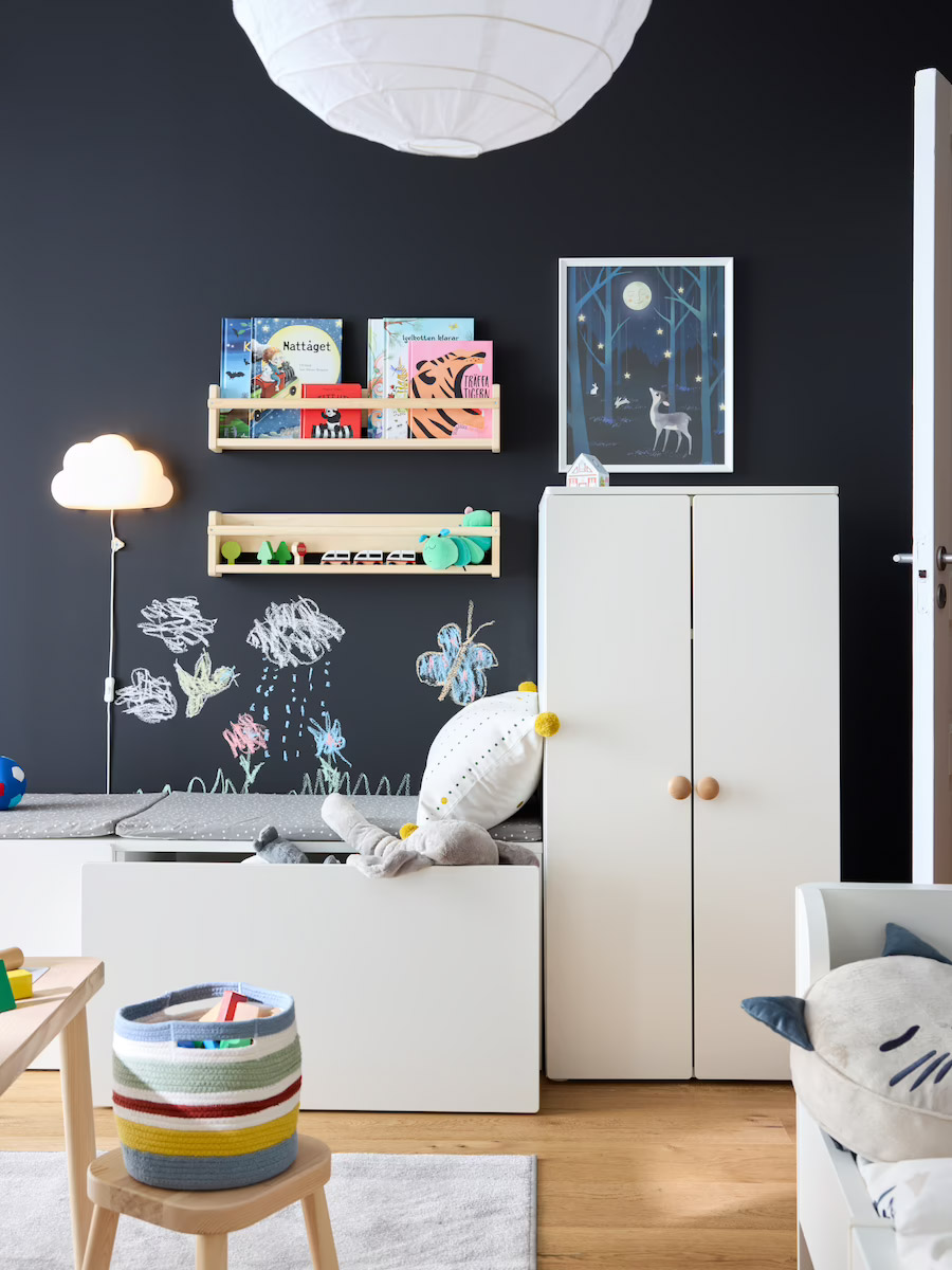 把衣櫃和書櫃等家具固定在牆上十分重要,不但出於安全考慮,也方便孩子盡情使用產品。記得把設計巧妙的兒童衣櫃固定在牆上,使它變成真正照顧孩子需要的衣櫃。
