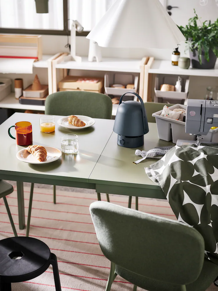 有時想要更大的桌面,但空間有限?可延伸、折疊的餐桌,能在需要時靈活增加桌面空間;例如邀請眾多好友的生日派對,或在縫紉時把材料攤開,同時保有用餐空間。