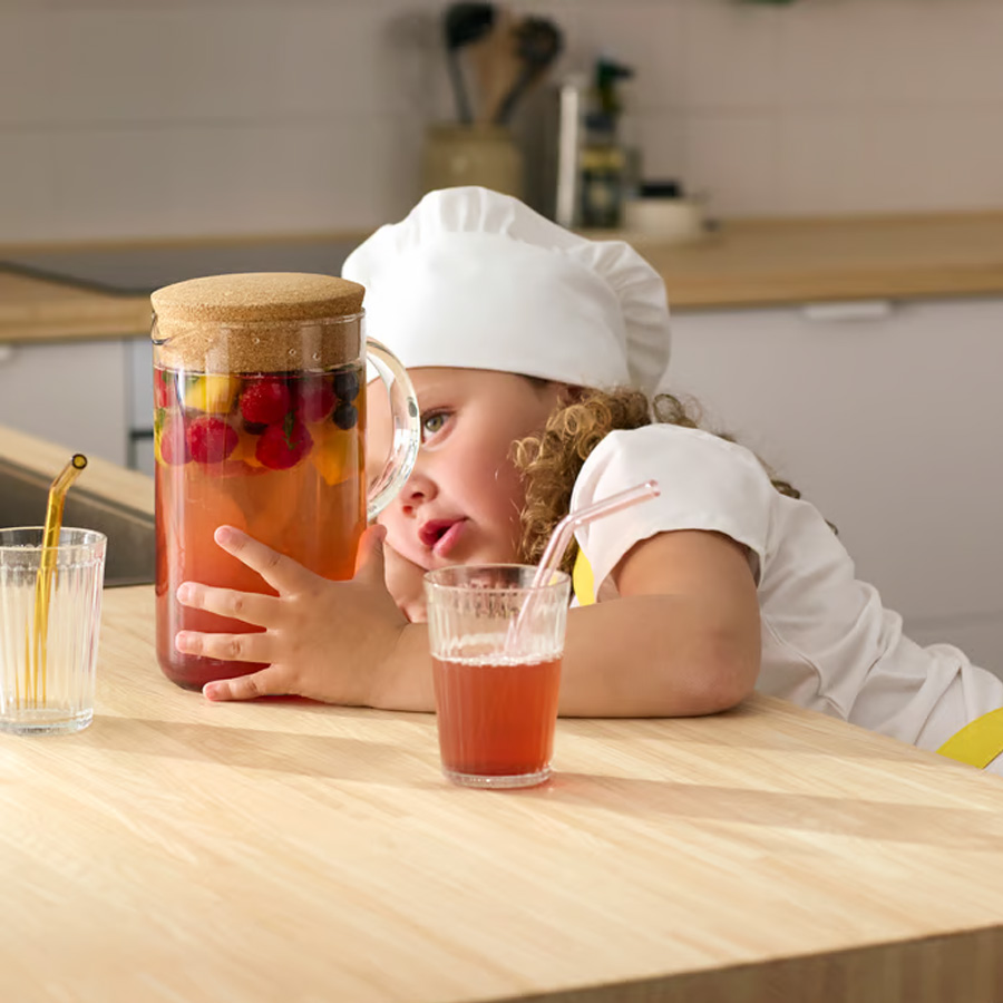 任何開水氣泡水和果汁裡加些果粒或莓果,普通冰飲立刻升級成特調。推薦IKEA 365+ 附蓋冷水壺,和倒進滿滿果粒果汁的SPJUTROCKA連蓋製冰盒做你的靠山。無論小廚師決定放進什麼好料,多喝水永遠是對的。