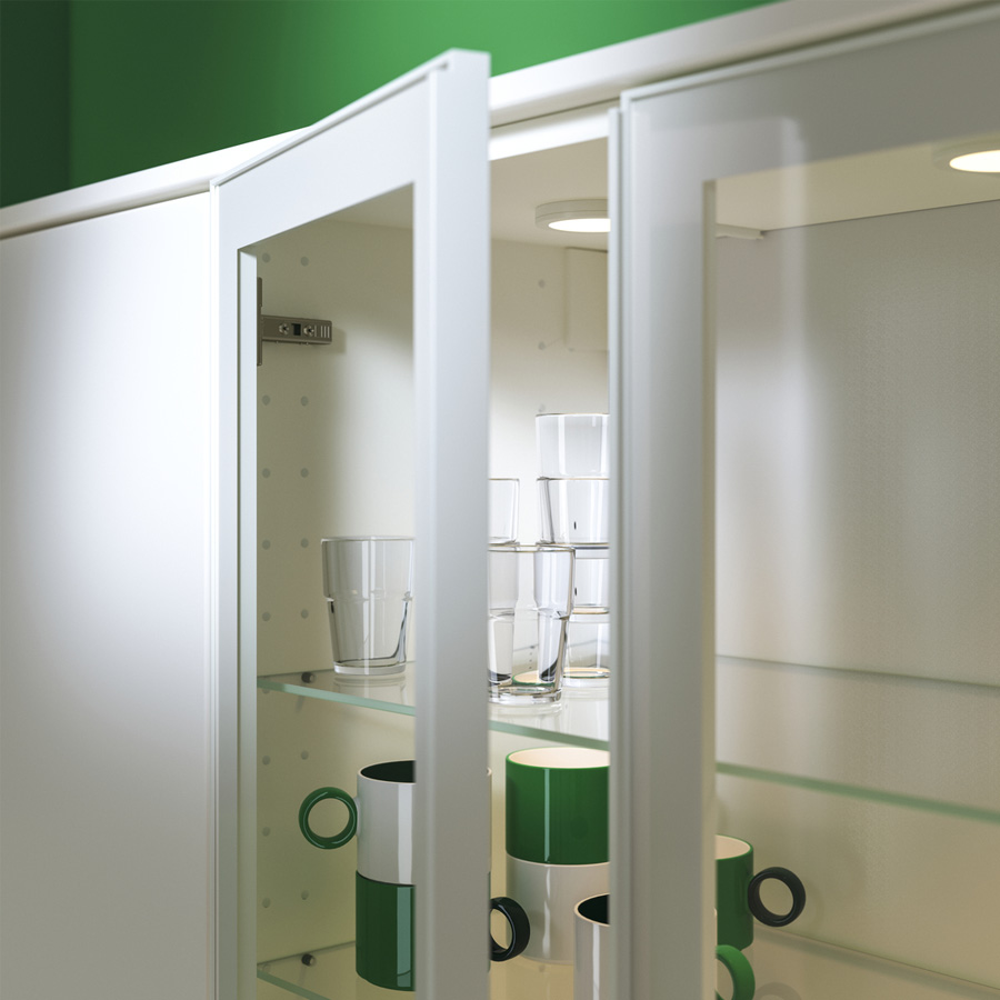 天花板高度仍有空間時,建議在冰箱或冷凍櫃頂端增加上櫃,不但爭取更多儲物空間,外觀整體性也更高。以及越來越多家庭增設的洗碗機,搭配同系列廚櫃門片,風格一貫廚房更敞亮。