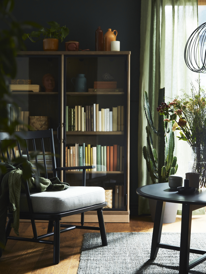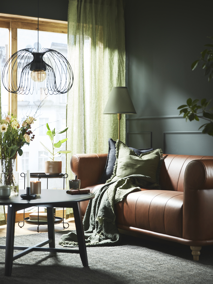 來到這裡,VISKAFORS 兩人座沙呈現了不一樣的面貌;柔軟的圓弧曲線、經典設計和寬大扶手,和傳統風格家具和諧地融為一體。周圍的深色和綠灰色調,搭配像花朵般的造型吊燈和黃銅色燈架,帶來閒適自在的優雅經典面貌。