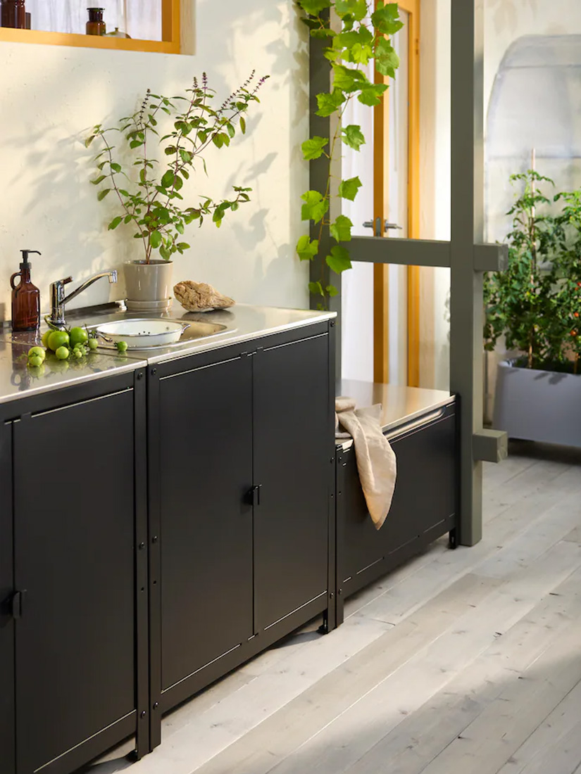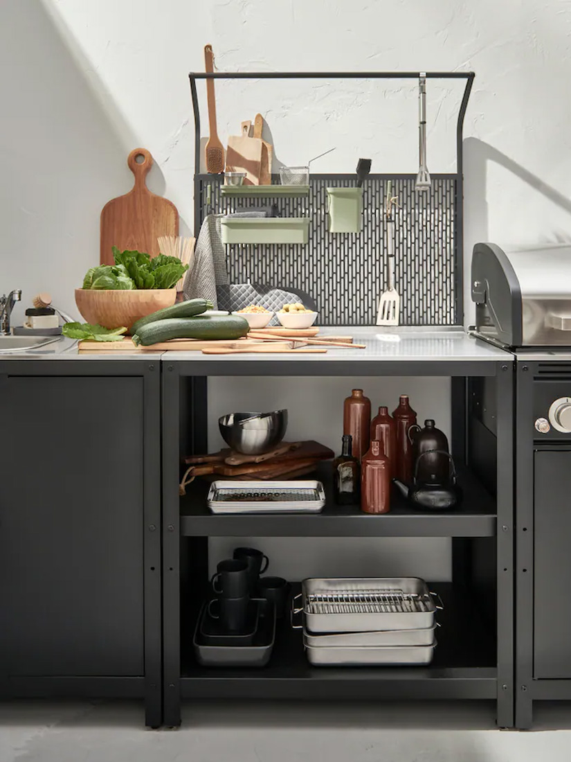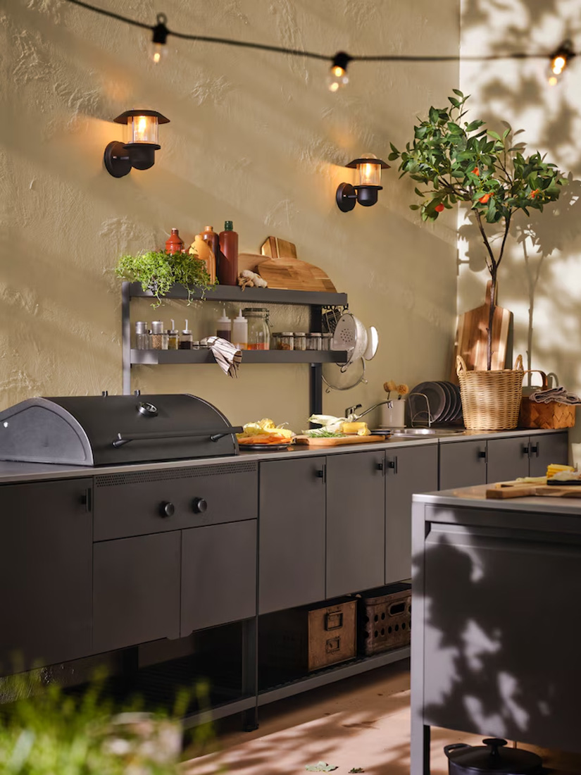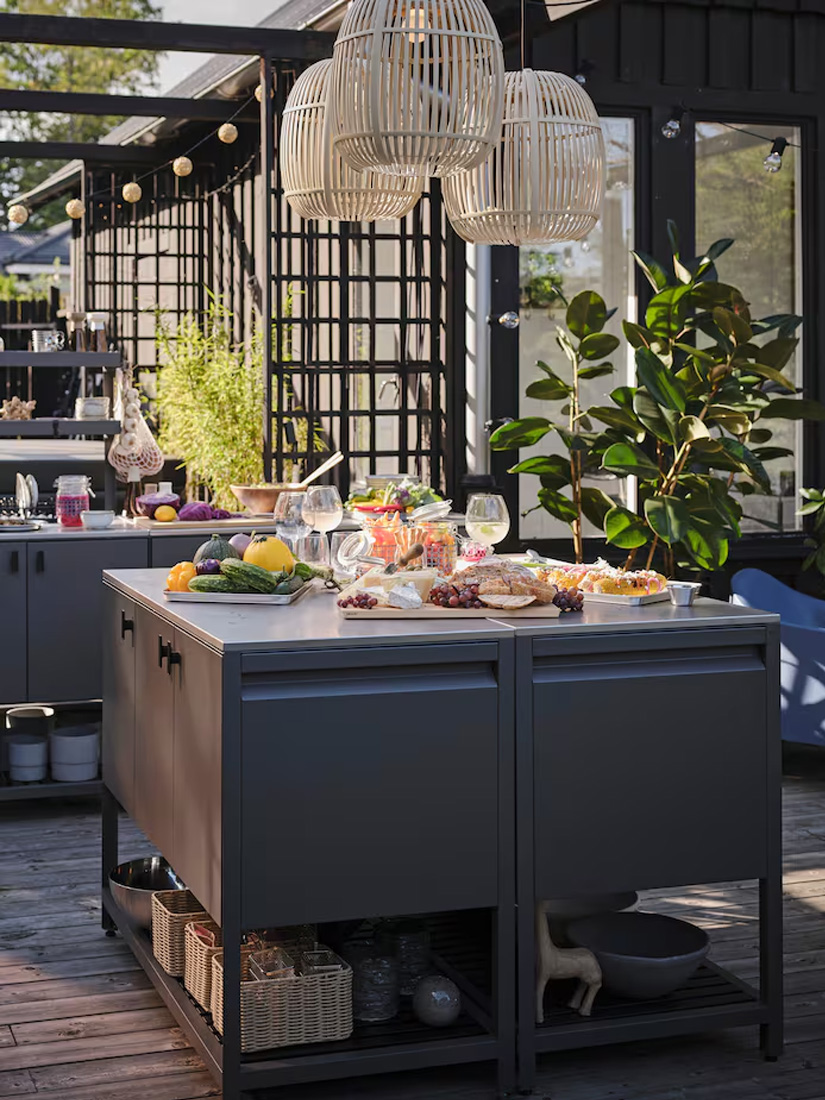 使用IKEA戶外廚房全系列輕鬆打造專屬戶外廚房;不僅方便,還有許多額外好處;例如比訂製廚房更省時,只需挑選想要的物件,組裝並擺放到位就大功告成。如果想更換設計,也能透過增減或移動物件來調整;即使搬新家,也能輕鬆把整套戶外廚房一起帶走。