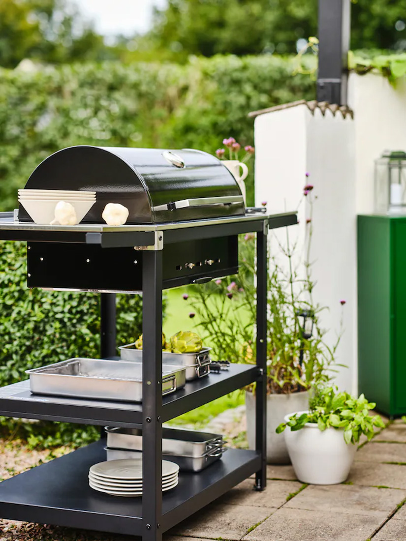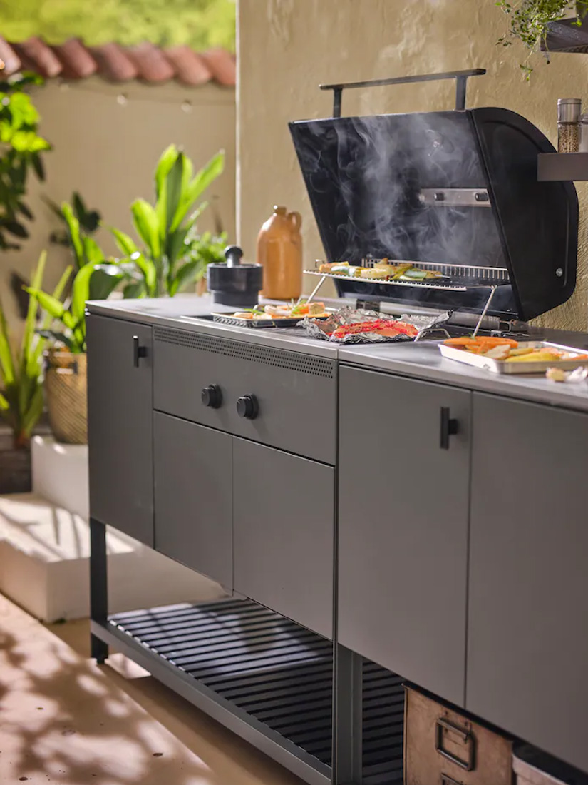戶外區有點小?沒問題!GRILLSKÄR系列提供多種節省空間的模組與配件,例如可摺疊的側架和附收納配件的背板。適合戶外烹飪和用餐的多種尺寸中島,打造靈活又實用的料理空間。