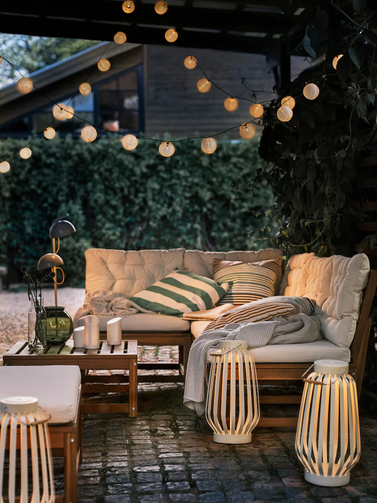 只要在戶外照明上花點心思,組合合適的燈具、蠟燭燭台和裝飾燈串,便能營造理想的戶外派對氣氛。以下是入夜後照亮戶外場地的好方法。