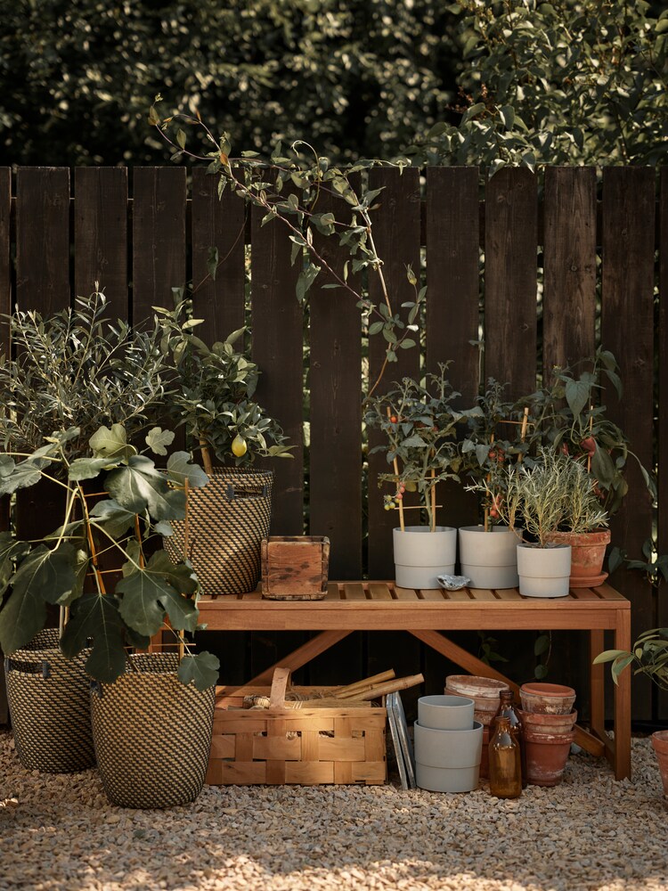 長凳是戶外空間最實用的選擇,既能招待客人,也可以安放盆栽植物,點綴佈置,而下方更能收納各種物品。