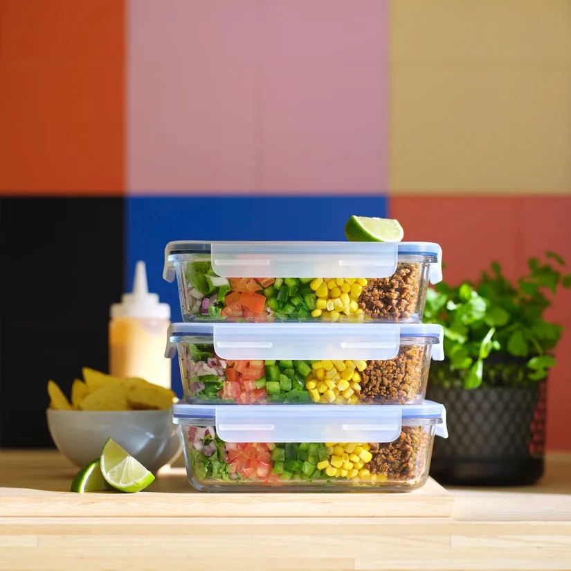 提前煮好多份便當,分裝後放進冰箱冷藏,不但能節省備餐時間,也少了每天思考要煮什麼的下廚壓力。可微波加熱的玻璃保鮮盒穩固耐用,即使放進背包也不易變形,一次下廚就搞定2-3天的午餐。上班或上學都能微波加熱,每天都能吃到美味的愛心便當。