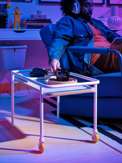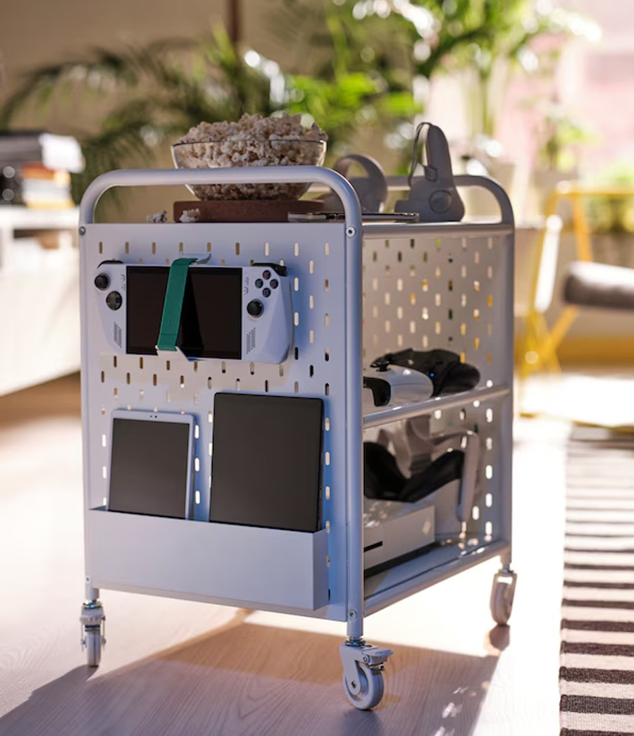 選擇有輪腳的收納家具,輕鬆移動到你想要的角落;利用短暫的遊戲空檔,立刻找到你需要的配件。把重要物品放進抽屜,不受灰塵侵擾(尤其如果最上層是托盤架),空間顯得乾淨有序。搭配開放式層架,一眼就能看到需要用的東西。
