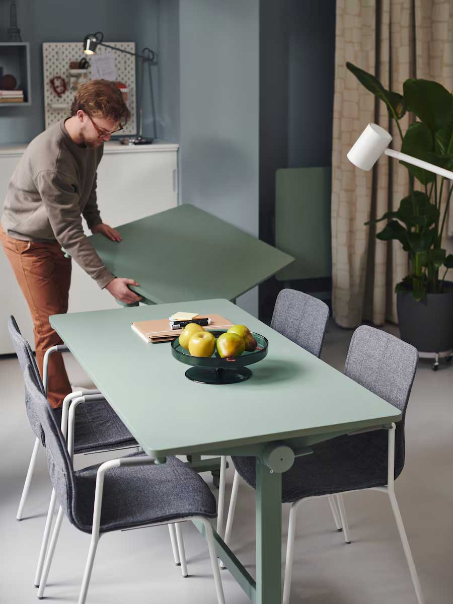可折疊的桌子,是小辦公室的最佳夥伴。只需輕彈和滑動,就能增加桌面空間,容納不斷壯大的團隊;或者因應會議需求,邀請更多夥伴坐下來一起參與討論。