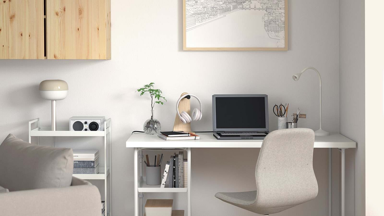 創造讓自己能輕鬆變換姿勢的工作桌空間,無論站、坐或介於兩者之間,都舒適自在。擺放幾盆植物,帶來綠意滿滿的幸福感和生產力。