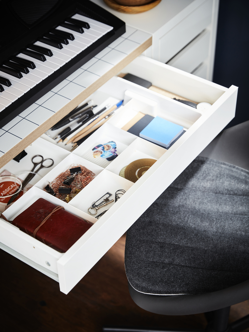 在抽屜裡放進 KUGGIS 隔層儲物格,一開始也許是不起眼的小嘗試,但很可能帶來生產力提升的骨牌效應。整齊有序的的辦公桌抽屜讓桌面重回簡約秩序,幫助你進入專注的心流狀態,高效度過美好的一天。