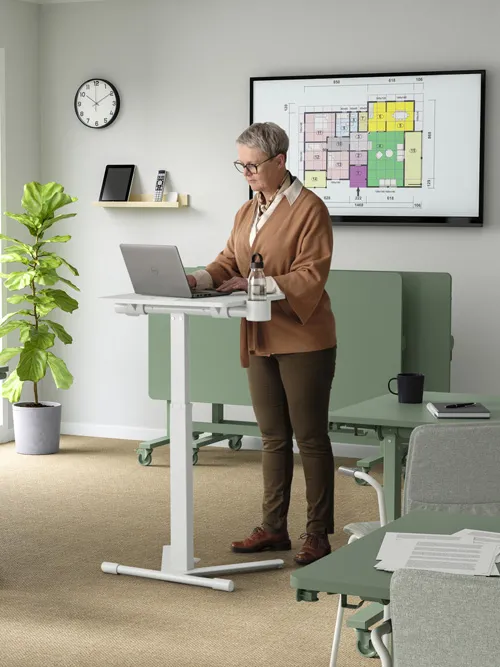 將螢幕放置在合適的高度可以減輕背部和肩部的壓力。簡單、符合人體工程學且舒適。