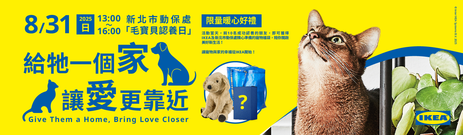 8/31(日),IKEA 新莊店再次與 新北市動保處 & 八里動物之家 攜手舉辦「毛寶貝認養日」,
