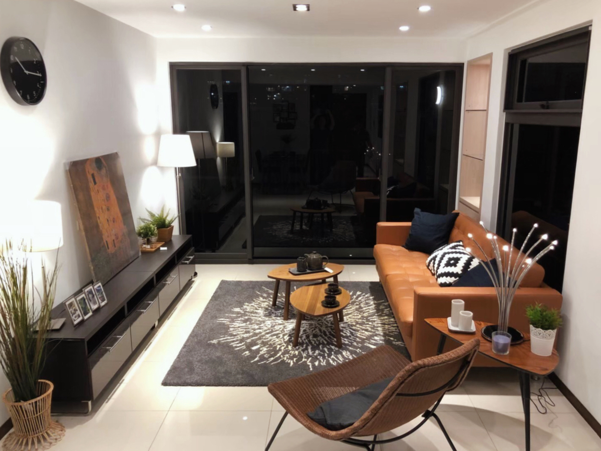 空間色調採用黑、灰、褐色階,搭配皮革及實木元素家具,提升空間質感 , 塑造現代風格的沉穩視覺及內斂住家氛圍。