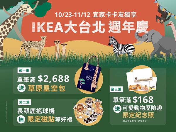 *IKEA大台北分店 (新莊店, 新店店, 內湖店,台北城市店) 限定。卡友價商品及售價以各店及官網實際標示為主,詳情請洽現場服務人員,商品數量有限,售完為止。
