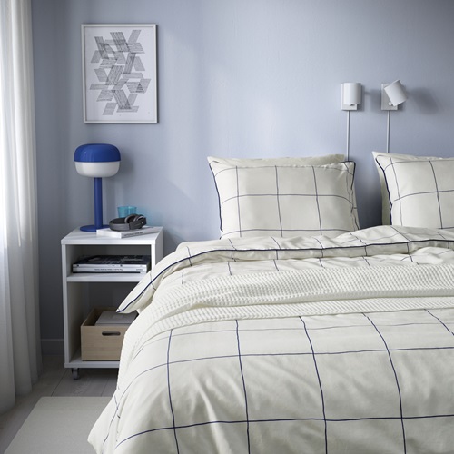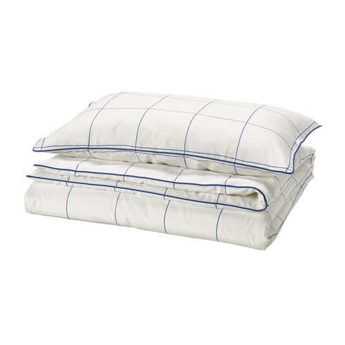 被套附1個枕頭套, 白色 藍色/方格, 150x200/50x80 公分