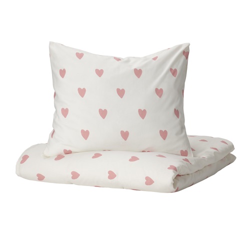 被套附一個枕頭套, 心 白色/粉紅色, 150x200/50x80 公分