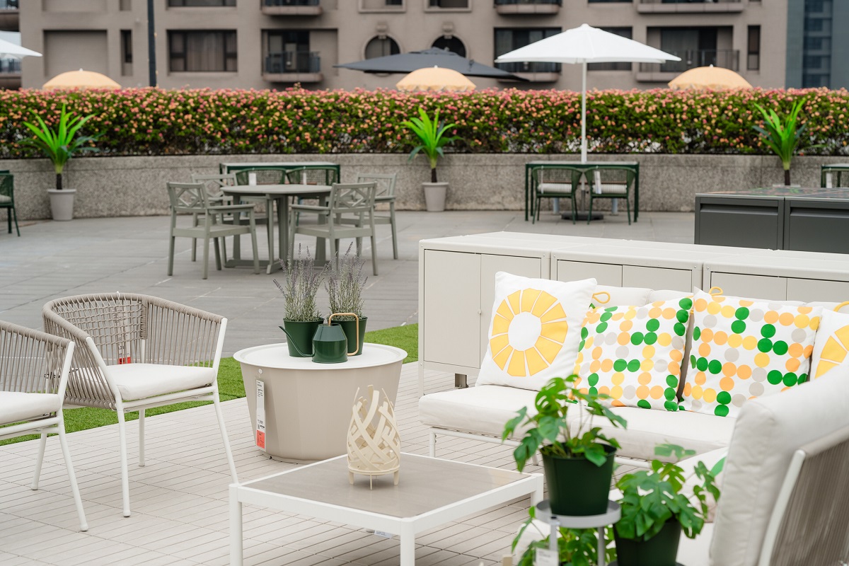 IKEA台中店空中花園位於5樓戶外空間,讓你在都市中就能用綠意療癒身心靈!更貫徹IKEA對於永續發展的理念,設計成一個充滿趣味與創意的永續生活體驗場所