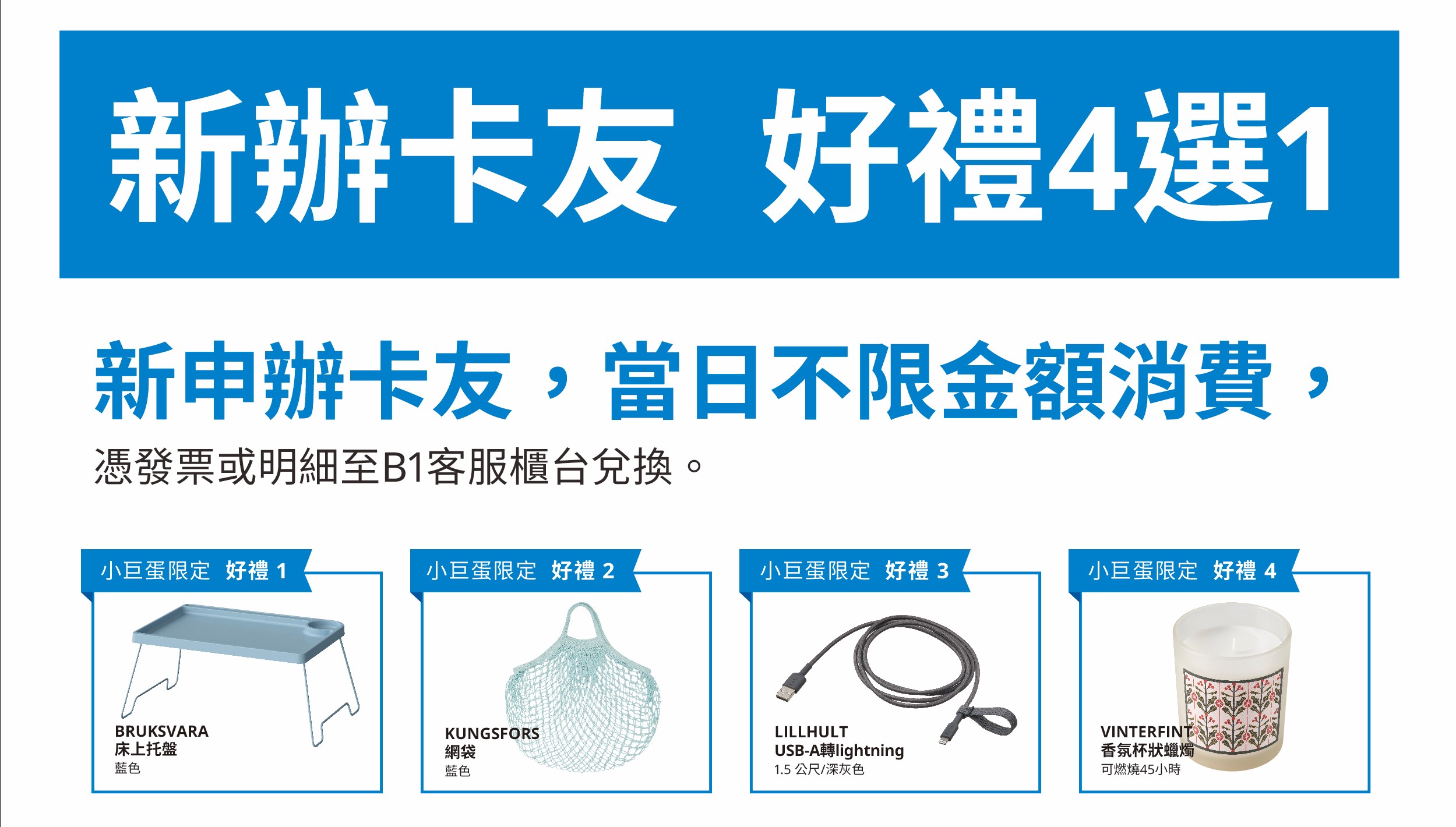 免費加入宜家卡!隔日起可享一次50元購物折抵優惠,一起打造理想家居!