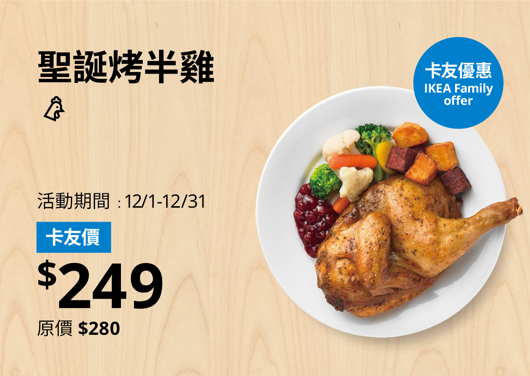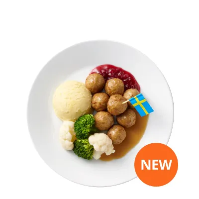 含瑞典烤肉丸、薯泥、雙色蔬菜、肉丸奶醬、越橘果醬