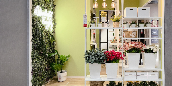 理想中的花藝空間不只是展示花朵的美麗,更需要一個能在眾多素材中快速組合的有效空間。讓IKEA企業業務為你規劃夢想中的花店吧! 利用各式層架組合搭配多元的收納盒,雜物百貨被有效收納、綠植展示於開放式的層架,顧客一眼便能在店裡找到喜歡的花束。