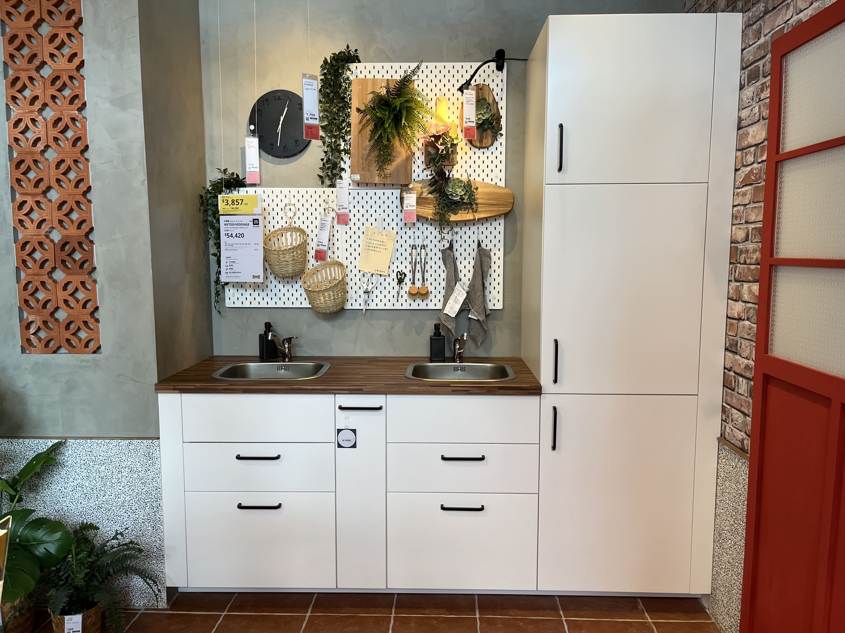 METOD模組化系統廚櫃可將水槽和電器收納的需求結合成整組的櫃體,符合餐廚教學空間的使