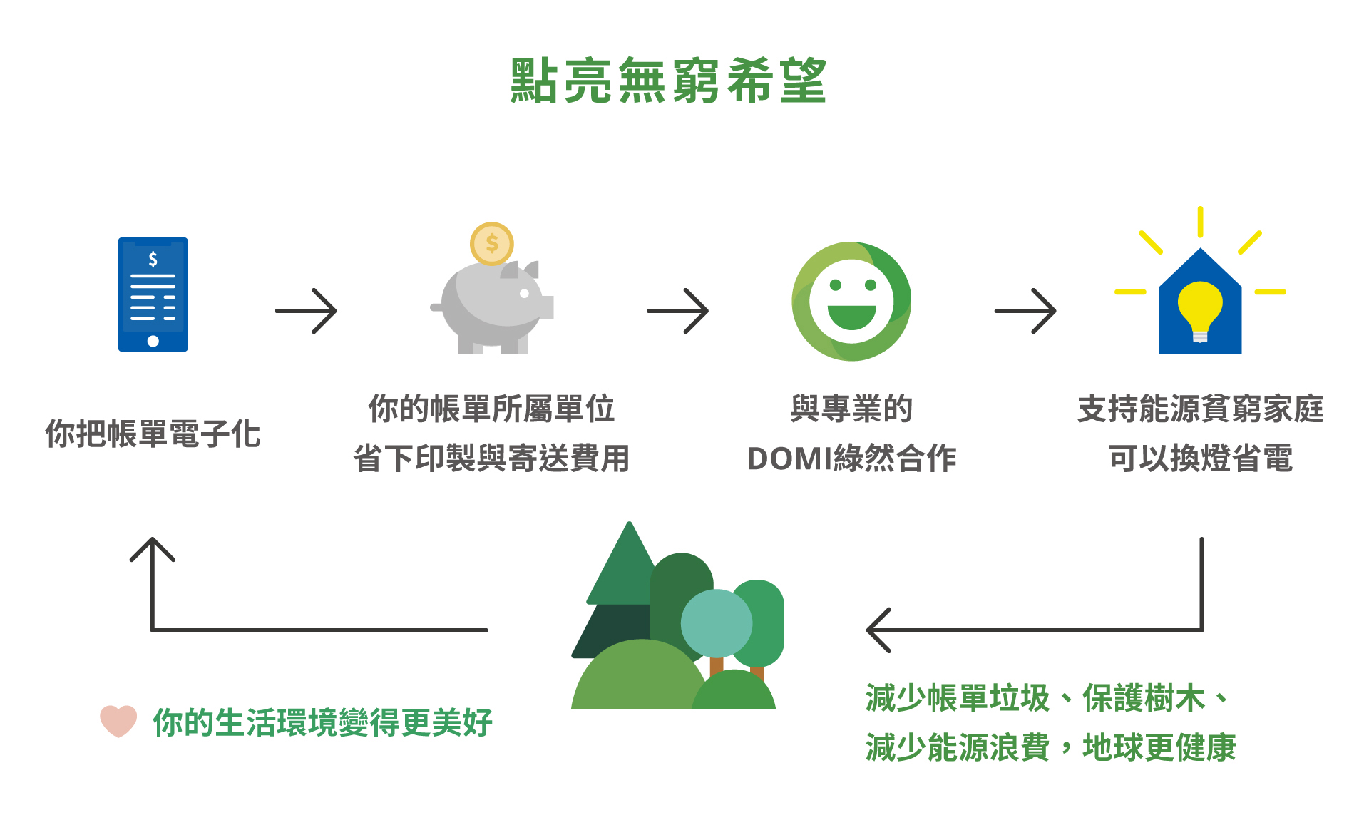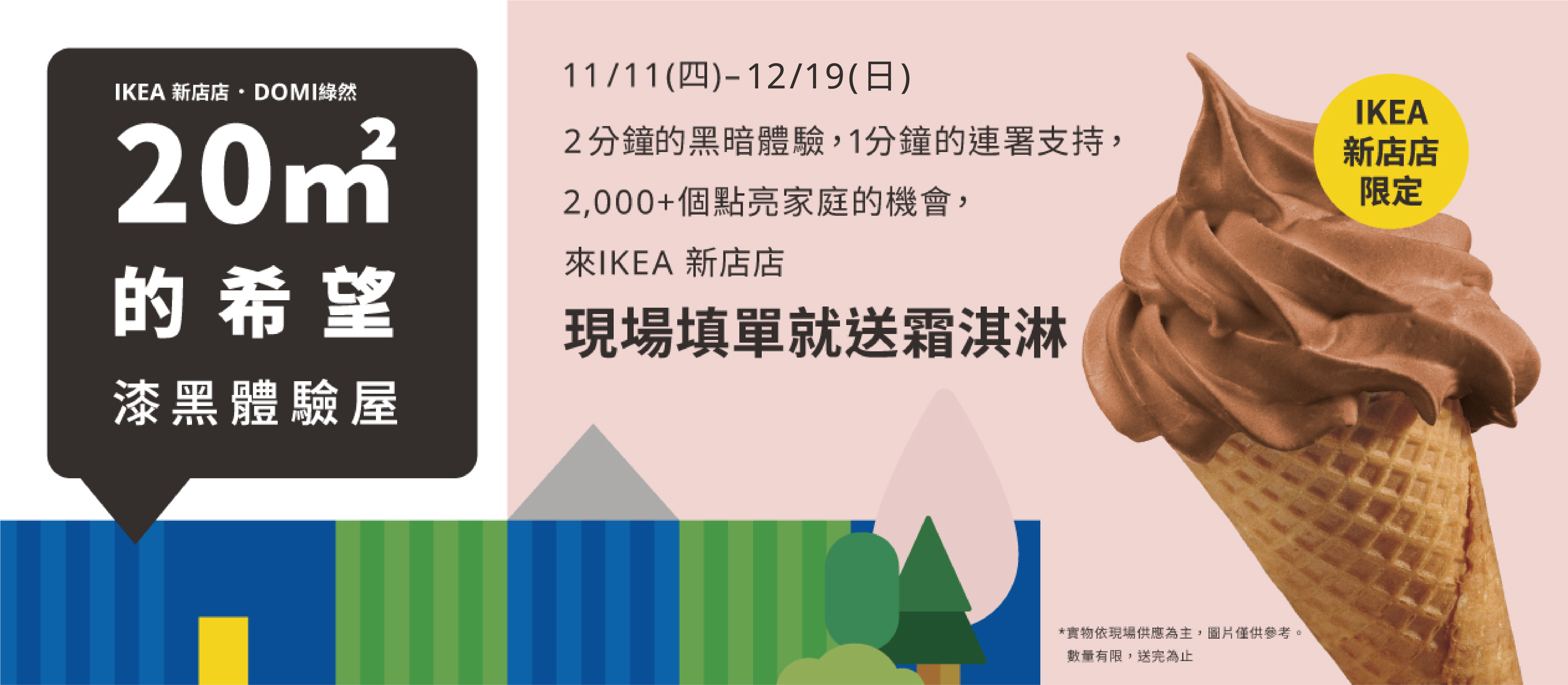 你可以透過這次活動連署支持「點亮無窮希望計畫」,只要完成每 5 個連署,IKEA 新店店即捐出 1 個 LED 燈泡,由 DOMI 到這些家戶檢修換燈,一起點亮他們的家。